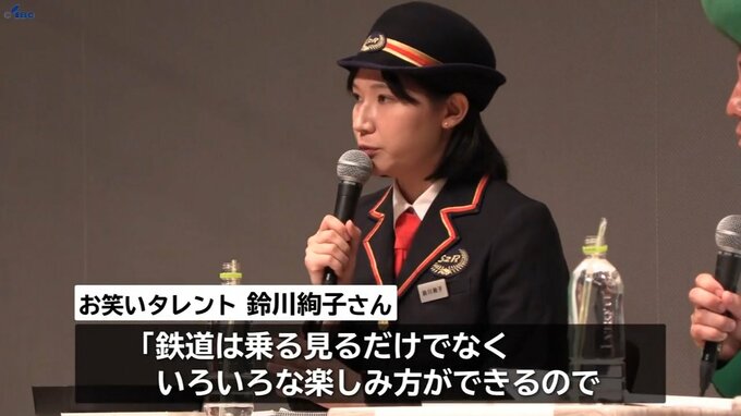 このうち午後に行われたトークセッションでは「わたしのまち、わたしの未来つなぐ鉄道」をテーマにゲストが鉄道への思いを語りました。鉄道好きで知られるお笑いタレントの鈴川絢子さんは「鉄道は乗ったり見たりするだけでなくいろいろな楽しみ方ができるので、分かりやすい情報発信をしてもらえればファンとしてうれしい」と話しました。