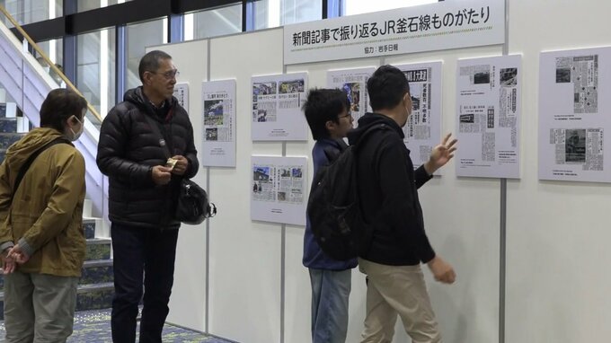 また、会場では1950年年に開通したJR釜石線に関する新聞記事がパネル展示され、訪れた人が釜石線の歴史を振り返っていました。