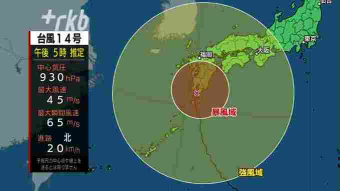 大型で非常に強い台風14号は、九州の広い範囲を暴風域に巻き込みながら北上していて、19日の朝、九州北部に最も接近する見込みです。台風14号は鹿児島県付近にあり、時速20キロの速さで北北西に進んで…