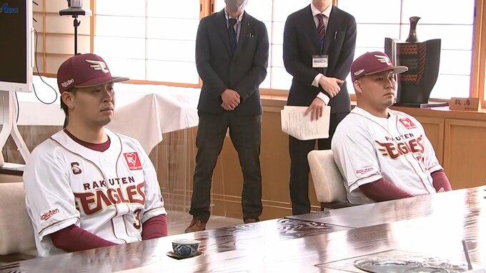 プロ野球・東北楽天ゴールデンイーグルスの選手と球団関係者が岩手県庁を訪れ、今シーズンの終了を報告し来季の飛躍を誓いました。18日岩手県庁を訪れたのは、楽天の浅村栄斗選手と石原彪選手、松野秀三野球振興推…