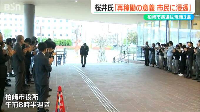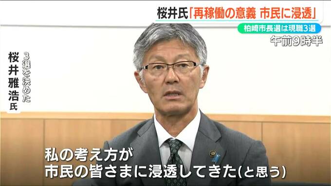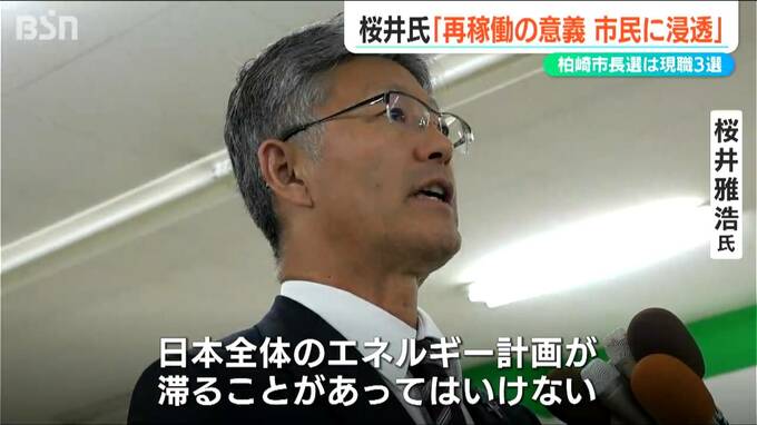 【3選を決めた桜井雅浩氏】「制限を付けながらも原子力発電所の再稼働には意義があると申し上げていること、私の考え方が市民の皆様に浸透してきた(思う)」