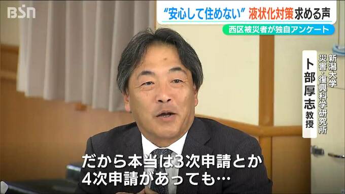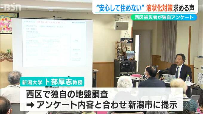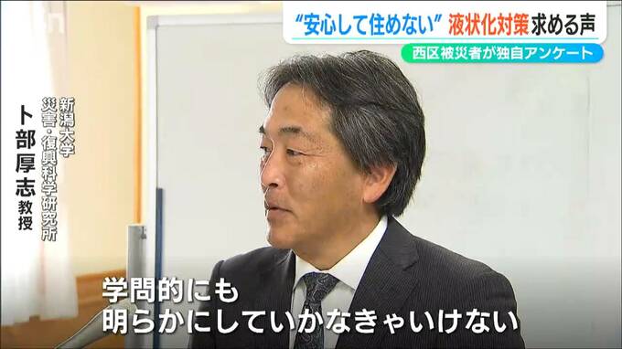新潟大学の卜部教授は西区で独自の地盤調査を行い、調査結果がまとまり次第、アンケート内容と合わせて新潟市に提示する方針です。