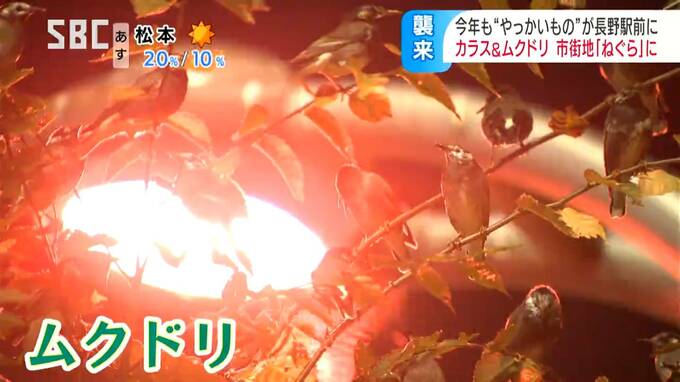 この日は、長野駅の線路にカラス、東口の街路樹にムクドリが集まり、鳴き声を響かせていました。