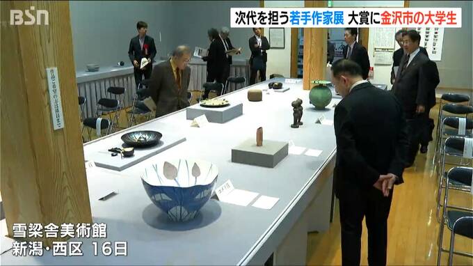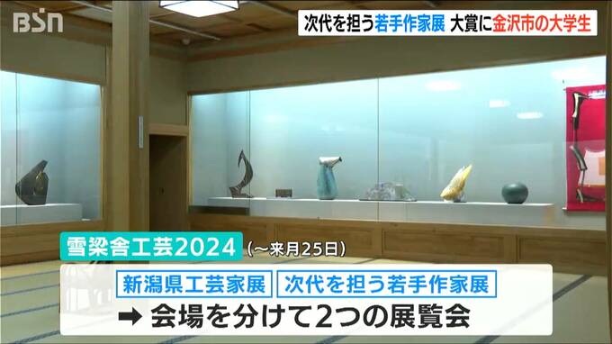 会場では次世代を担う若手作家の作品が並ぶほか、美術館の別の会場では人間国宝の作家らによる作品も展示されています。この展覧会は12月25日まで開かれています。