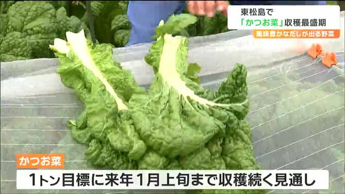 「かつお菜」は、1トンを目標に来年1月上旬まで収穫が続く見通しです。