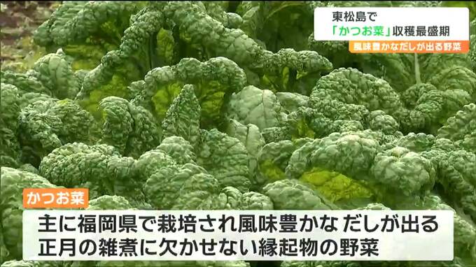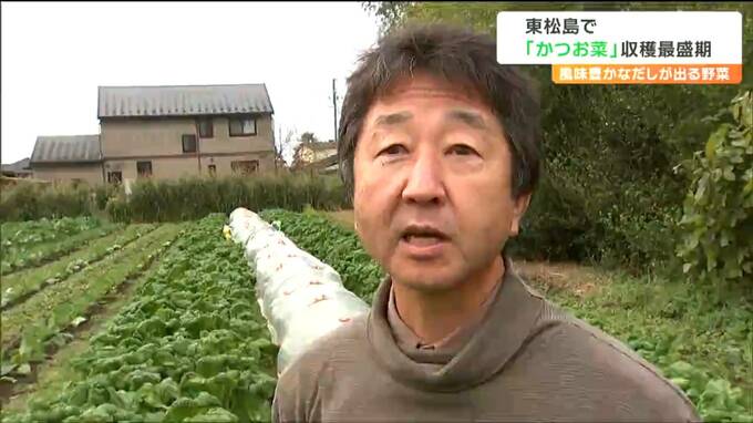 カツオのような風味が豊かな出汁が出る葉物野菜、「かつお菜」の収穫が宮城県東松島市で最盛期を迎えています。
