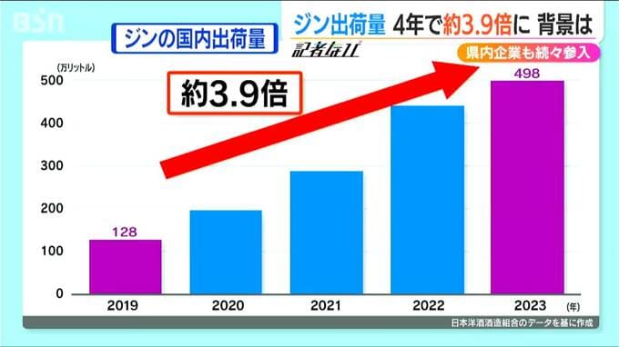 年々、人気が高まっている蒸留酒の『ジン』に注目します。ここ4年で国産のジンの出荷量は、およそ3.9倍に増えるなど市場が急拡大しているのです。新潟県内でも今年、長岡市にある日本酒の酒造会社がジン事業への参…