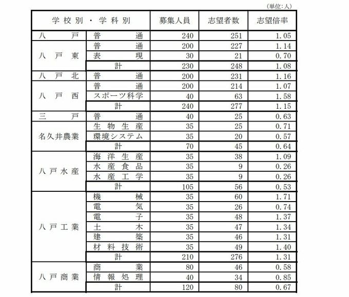青森県立高校 志望倍率 青森1.27倍、弘前1.27倍、八戸1.05倍など… 全日制志望倍率0.94倍【全校掲載・学校別倍率一覧】 進路志望状況第1次調査結果 青森テレビ 2024年11月19日(火) 17:00 国内