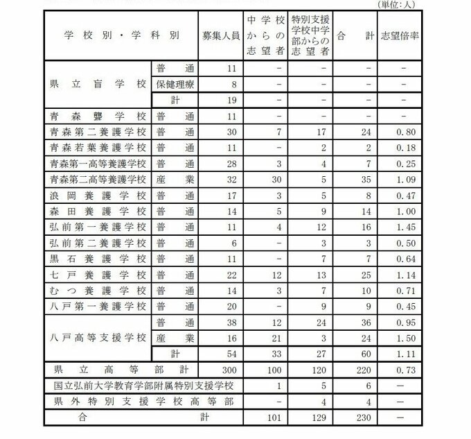 青森県立高校 志望倍率 青森1.27倍、弘前1.27倍、八戸1.05倍など… 全日制志望倍率0.94倍【全校掲載・学校別倍率一覧】 進路志望状況第1次調査結果