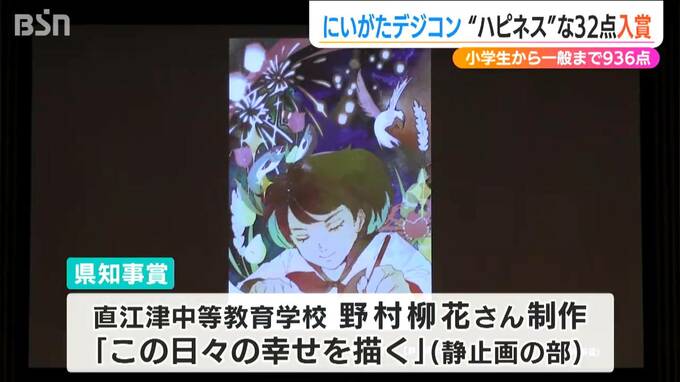 IT産業をリードしていく人材を発掘する「にいがたデジコングランプリ」。24回目を迎えた今年は「ハピネス」がテーマで、新潟県内の小学生から一般まで936点の応募があり32点が入賞しました。