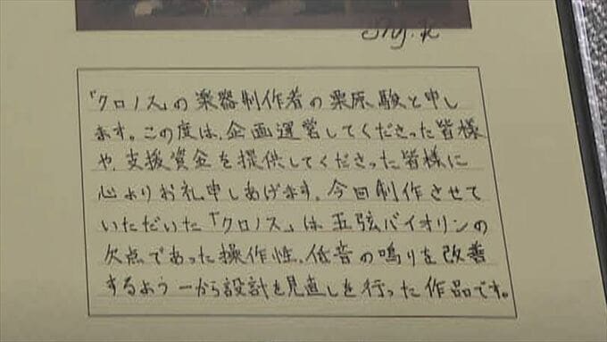 「長い時の流れのある1ページのときにしか僕たちはこの楽器とは出会えない。次の世代に受け継いでいく使命を託しますが、そのためにあなたにやってほしいことは、精いっぱい日々生きてもらうこと、平和を願ってクロノスで音楽を奏でてください、と書いてあります」