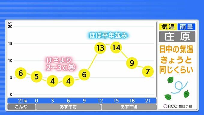 朝の気温はきょうと同じくらいからきょうよりも2℃~3℃ほど高いところ多い見込みです。冷え込みは若干緩みますが、それでも北部では5℃を下回ってくるでしょう。日中の気温は各地で平年並みくらいの予想です。