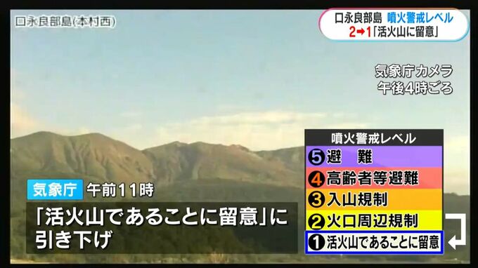 屋久島町の口永良部島の噴火警戒レベルについて気象庁は2から1の「活火山であることに留意」に引き下げました。口永良部島では火山性地震が減少するなど火山活動が低下しており、気象庁は20日「火口周辺に影響を及…