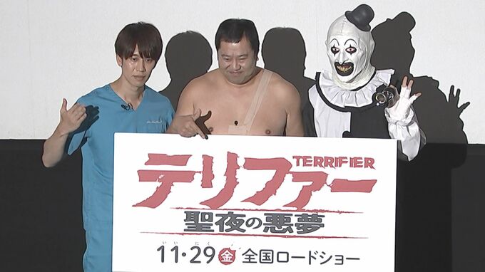 お笑い芸人・とにかく明るい安村さん、しゅんしゅんクリニックPさんが、映画「テリファー 聖夜の悪夢」ジャパンプレミアに登壇しました。