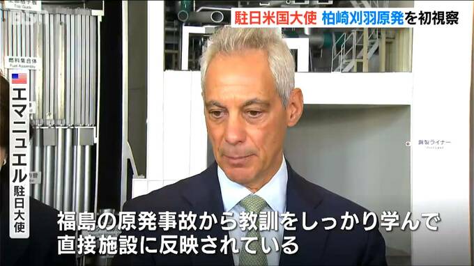 アメリカのエマニュエル駐日大使が新潟県の柏崎刈羽原発を視察し、「福島第一原発の事故の教訓がしっかりと反映されている」と述べました。