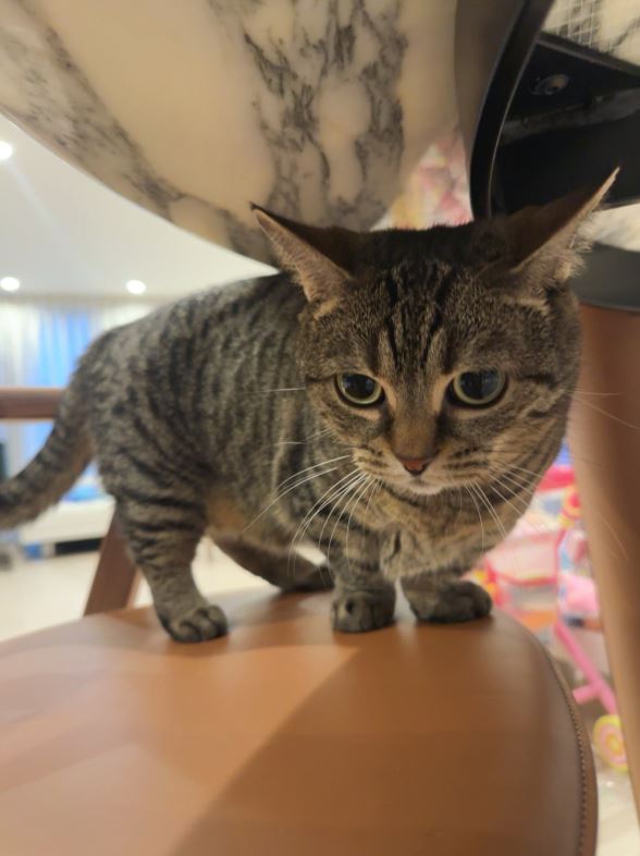 その「ゴープレ」について「最近ゴーちゃんが机の脚をガリガリしはじめて革が少しめくれてた」と、家猫あるあるな投稿。しかしテーブルの脚に革が巻かれているだけでも高級なイメージがする上に、タイトルには「エルメスの革が、、、」とあるとおり、愛猫「ゴープレ」は高額な椅子の脚で爪研ぎをするという乱暴を働きつつ、ケロリとした表情で椅子に居座っている様子です。