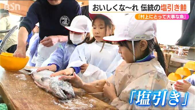 新潟県 村上市では、小学生たちが地元の伝統文化でもある冬の風物詩『塩引き鮭作り』に挑戦しました。「えら取るよ、血出るよ」体長50センチほどの大きな鮭にびっくりする子どもたち。瀬波小学校の4年生が体験した…