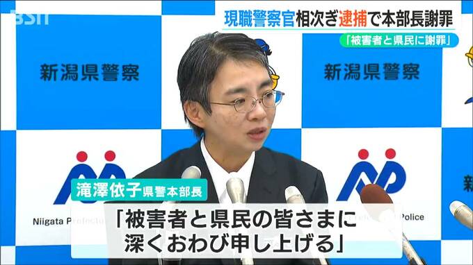 現職の警察官が2か月連続で逮捕されたことを受け、新潟県警の滝澤依子 本部長は、21日の定例会見で、「県民の皆さまの信頼を大きく損なうもので、被害者と県民の皆様に深くお詫び申し上げる」と謝罪しました。