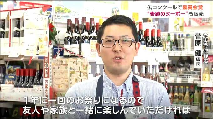 「最高金賞を受賞しましたロゼヌーボーに関しては、コンクールで1%未満の、奇跡のヌーボーと言われる商品になります。1年に一回のお祭りということになるので、ご友人やご家族と一緒に楽しんでいただければと思います」