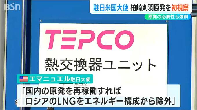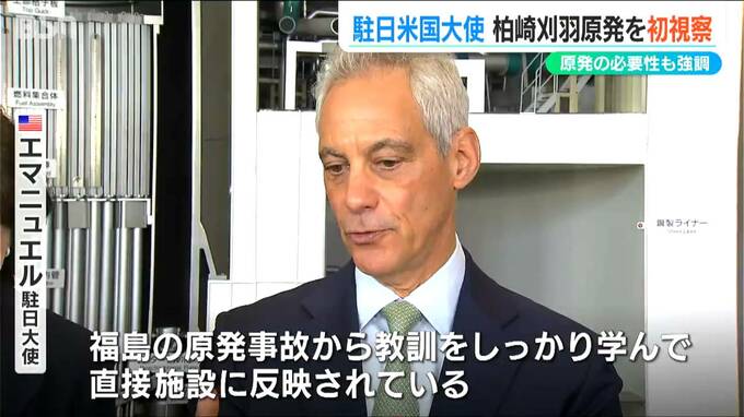 アメリカのエマニュエル駐日大使が21日、柏崎刈羽原発を視察。「福島第一原発の事故の教訓がしっかりと反映されている」と東電の安全対策を評価しました。