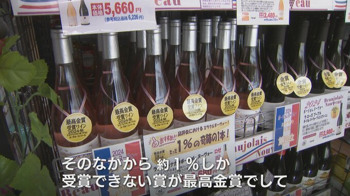 毎年11月の第3木曜日に解禁となるワイン「ボージョレ・ヌーボー」。富山市の酒販店にも特設コーナーが設けられこの日を楽しみに待っていた人たちが次々と訪れていました。