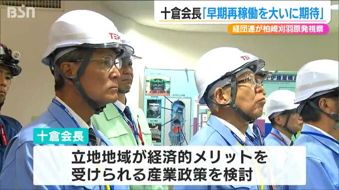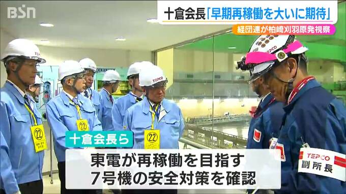 原発の再稼働を求める経団連のメンバーが21日、柏崎刈羽原発を視察しました。十倉会長は「早期に再稼働できることを大いに期待している」と述べました。