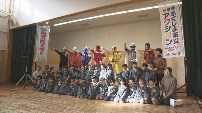 幼稚園の子どもたちが地震や火事がおきた時にどんな行動をとればいいかヒーローから学びました。白河市の丘の上幼稚園で21日に行われた防災教室は、子どもたちが火事や地震の時に落ち着いて行動できるようにとJA共…