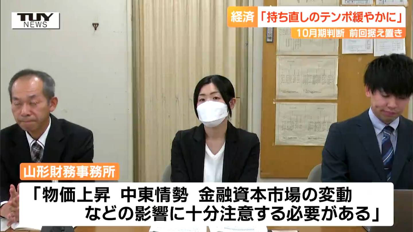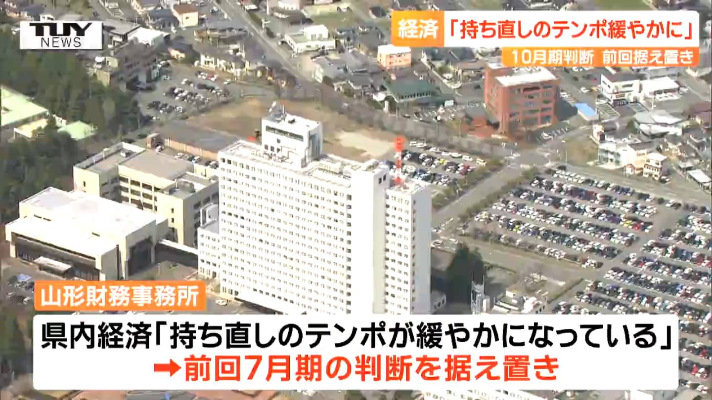 今年10月期に判断した県内の経済情勢について、山形財務事務所は「持ち直しのテンポが緩やかになっている」と、前回の判断を据え置きました。