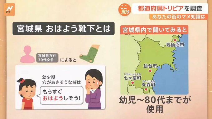 宮城県では、破れている靴下を4文字で「おはよう靴下」と呼ぶそうなんです。