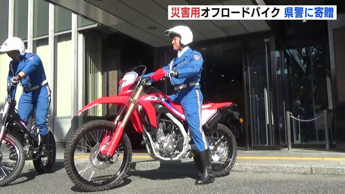 災害で悪路となった道でも走行できるオフロードバイクが、広島県警に寄贈されました。オフロードバイクを寄贈したのは、福山市の公益財団法人 渋谷育英会です。オフロードバイクは、豪雨災害で土砂が堆積したり地…