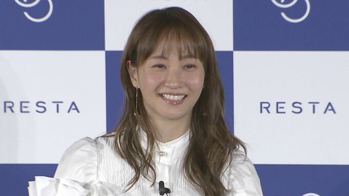 タレントの藤本美貴さんが、ウエルシア×ロート製薬「リスタ」新商品発表会に白のワンピース姿で登壇しました。