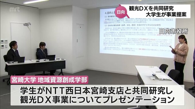 観光の分野でデジタル技術を活用していく「観光DX」について、企業と共同研究してきた学生たちが、宮崎県日向市に新たな事業を提案しました。これは、宮崎大学地域資源創成学部の観光・地域経済・産業政策研究室の…