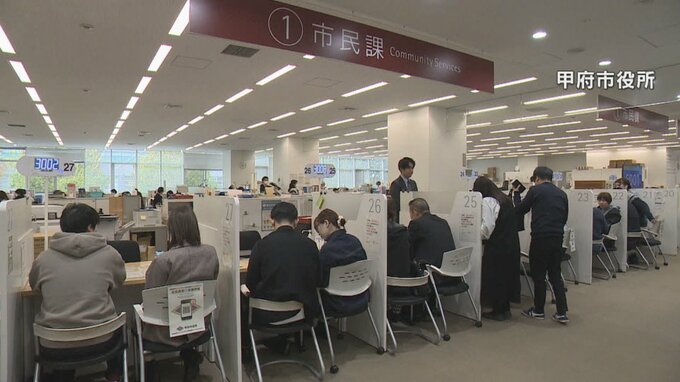 甲府市役所では通常の平日は1日2、3組ですが、きょうは22組のカップルが婚姻届を提出しました。