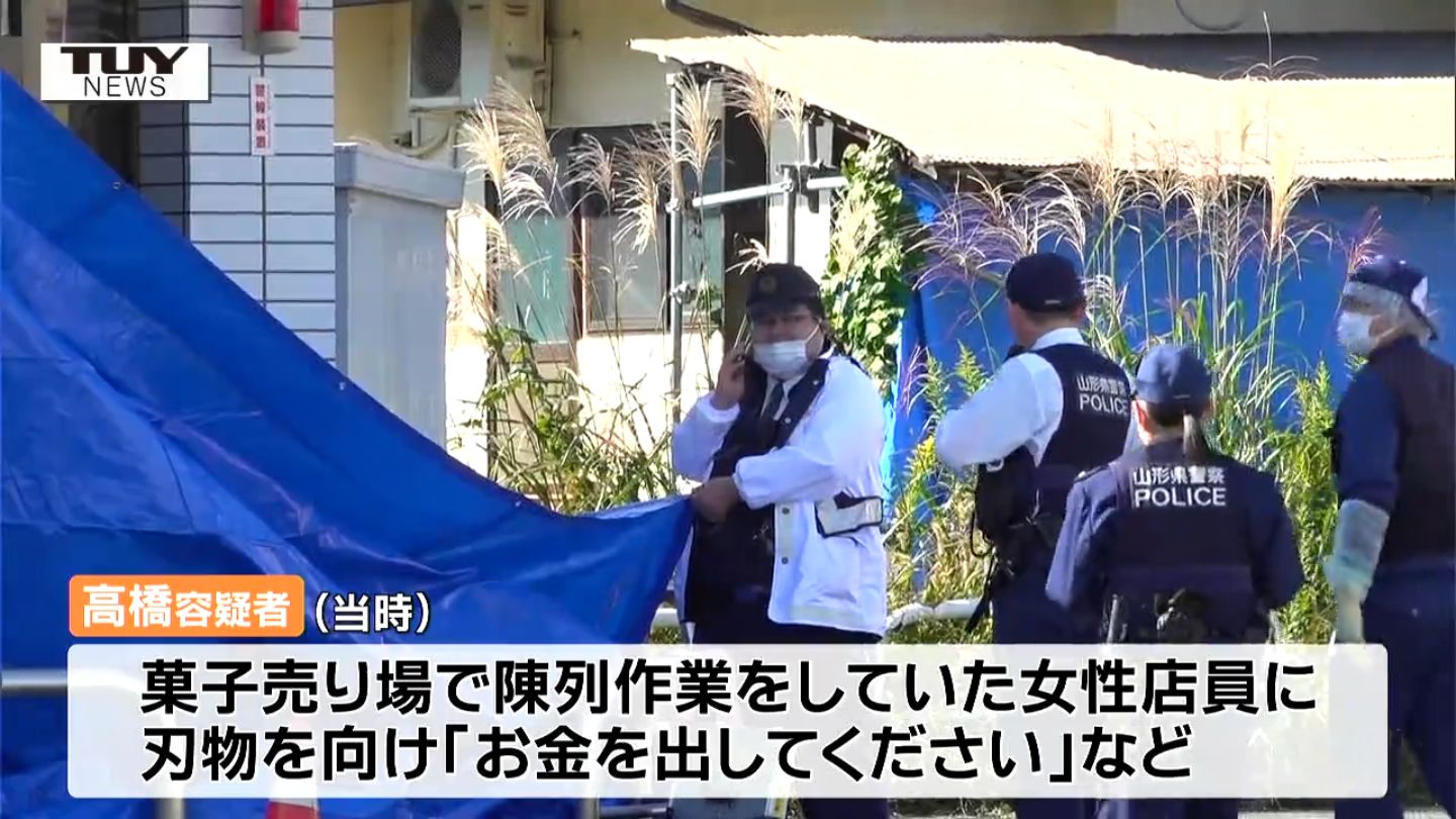 警察によりますと、高橋容疑者は先月15日の午前1時55分ごろから2時ごろの間、高畠町高畠のコンビニエンスストアで店員の女性に刃物を向けて脅し、現金を奪って逃げた疑いがもたれています。