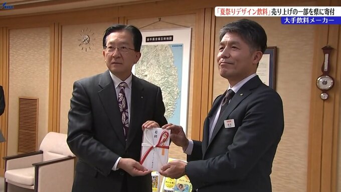 岩手県内の観光振興に役立ててもらおうと、大手飲料メーカーが東北の夏祭りがデザインされた商品の売り上げの一部を岩手県に寄付しました。22日はキリンビバレッジの鈴木大介東北支社長が県庁を訪れました。キリン…