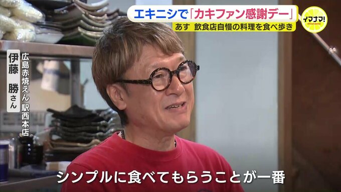 その23日、広島駅そばの「エキニシ」エリアで、飲食店自慢のカキ料理を食べ歩きできるイベントが開かれます。その名も「牡蠣ファン感謝デー」です。