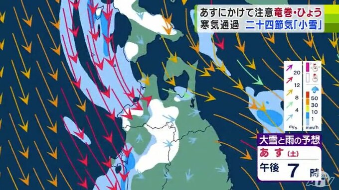 22日は二十四節気の「小雪」です。暦の上では雪がちらつく頃とされていますが、青森県内は大気の状態が非常に不安定となっていて、23日昼前にかけて竜巻や落雷、ひょうなどに注意が必要です。寒気を伴った低気圧が…