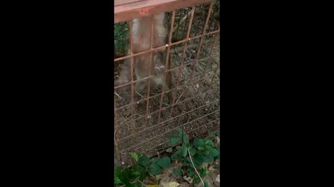 ネットの中を激しく走り回るのは、わなにかかったイノシシです。