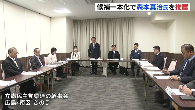 「来年の参議院選挙で、立憲民主党広島県連として森本真治さんを党本部に推薦することを決めさせてもらった」