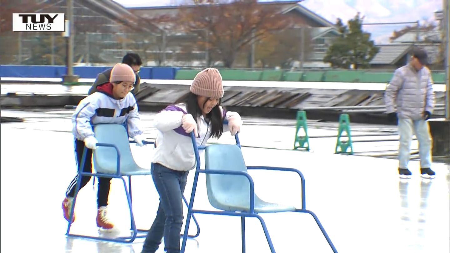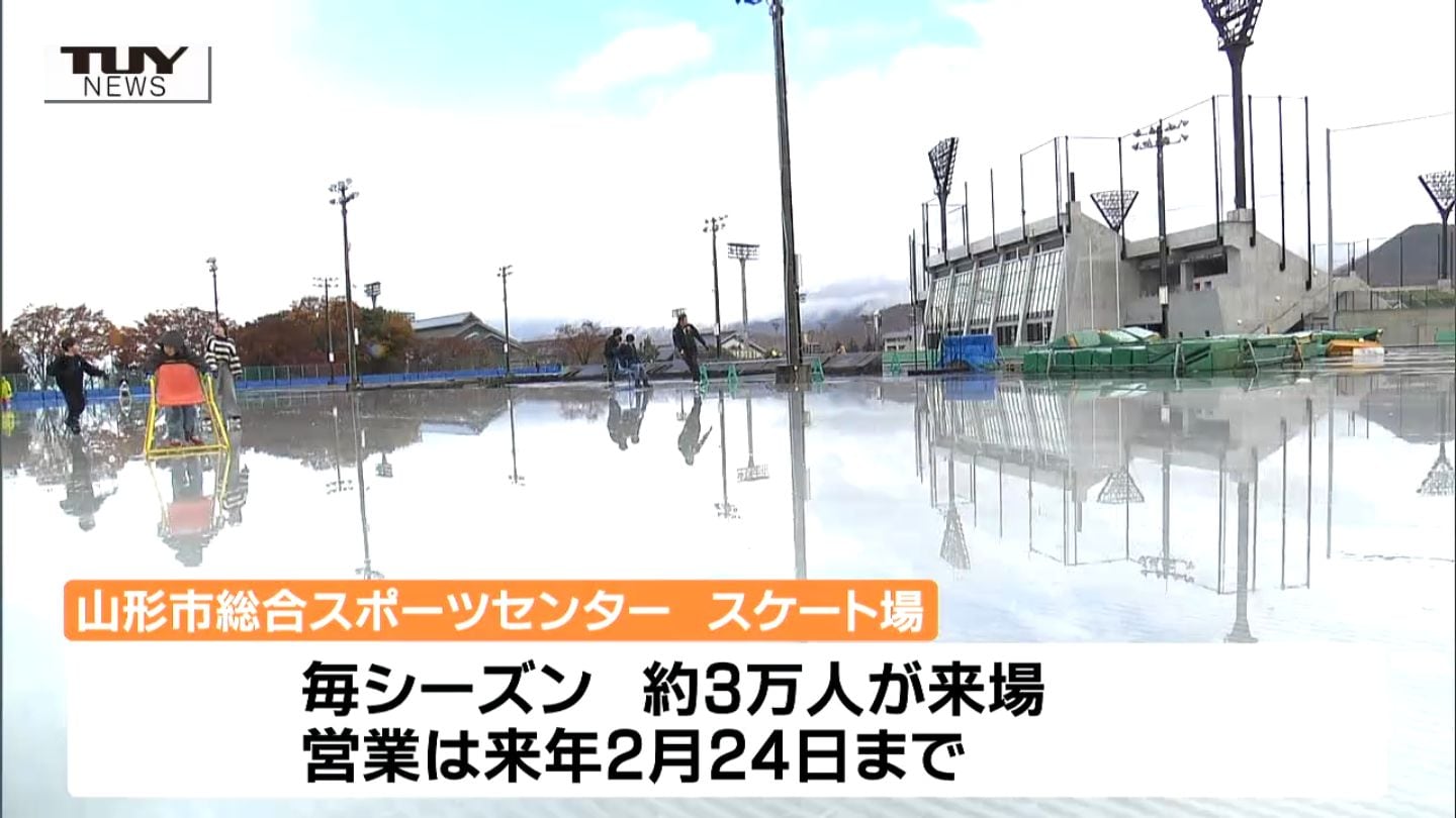 山形市ではきょう、屋外スケート場がオープンし、この日を待ちわびた人たちが初滑りを楽しみました。