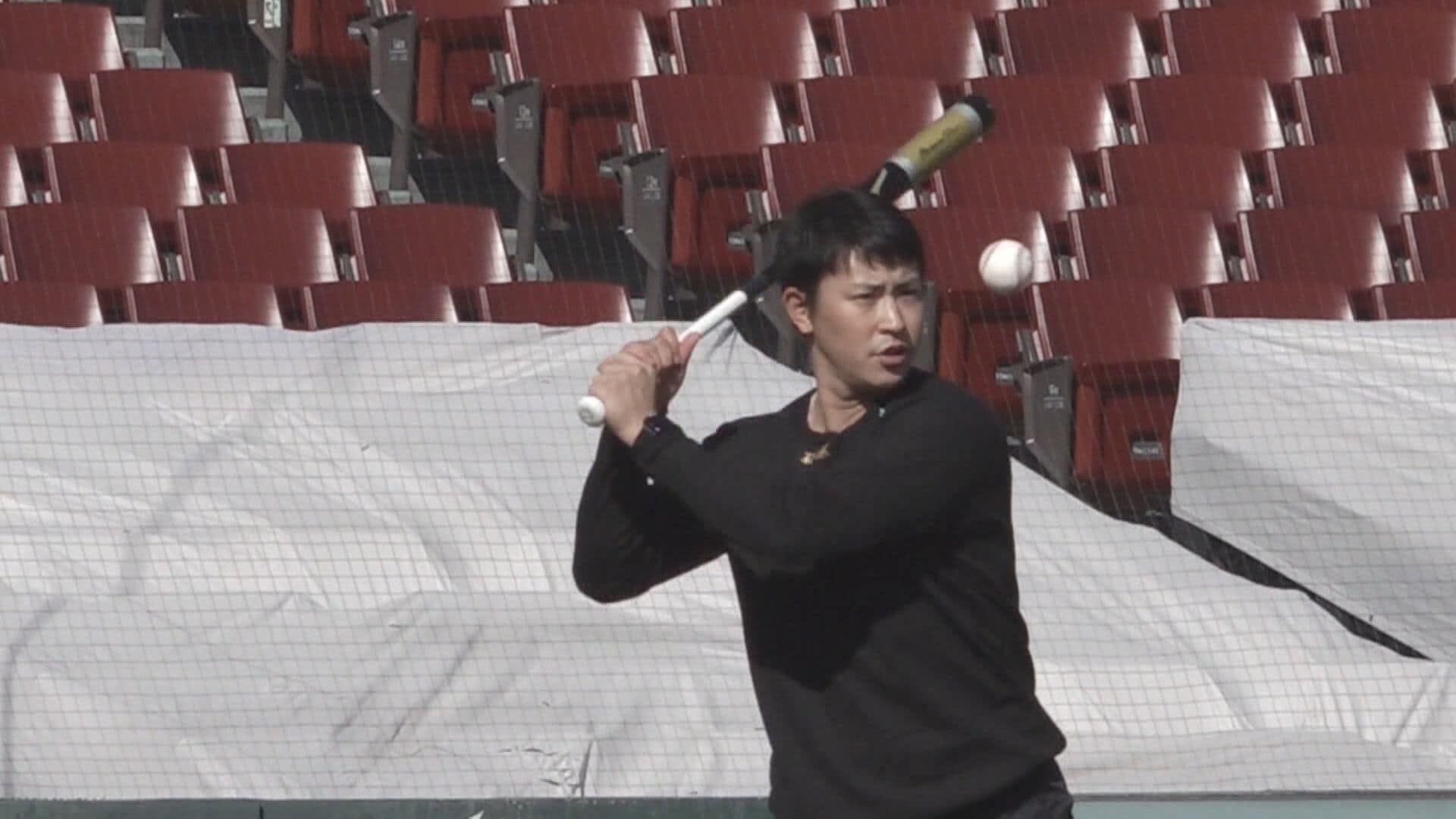 「めっちゃくちゃ重たいです、これ。やばいです。バットが重たいんです」