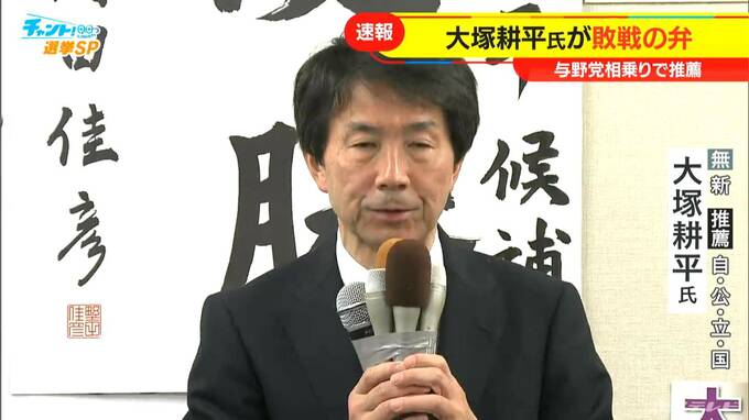 与野党相乗りの推薦を受けた大塚耕平氏(65)は「私の力不足と不徳の致すところ」「今後は名古屋の発展を祈りつつ、私もさらに努力して参りたい」と敗戦の弁を述べました。