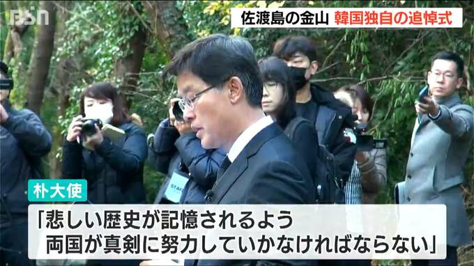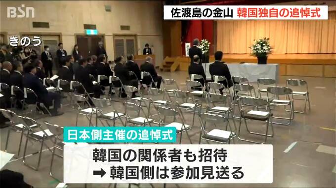 世界遺産の「佐渡島の金山」を巡り24日に日本側が主催した追悼式に参加しなかった韓国の関係者が23日午前、独自の追悼式を開催しました。