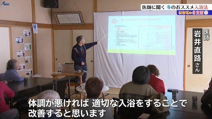 医師で、地元の診療所の所長も務める岩井直路さんによる「健康入浴法」の講座です。