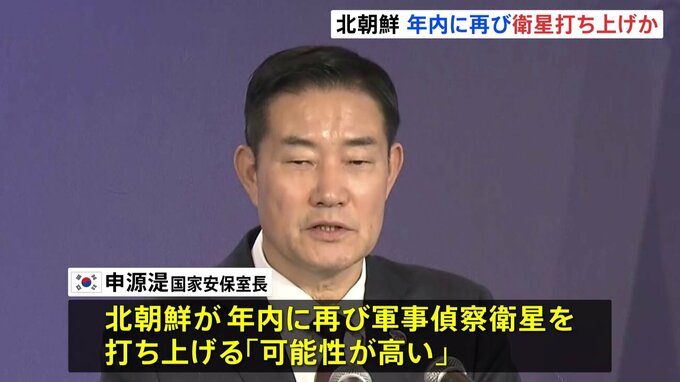 北朝鮮が年内に軍事偵察衛星を再び打ち上げる「可能性が高い」とする分析を韓国政府の高官が明らかにしました。韓国大統領府のシン・ウォンシク国家安保室長はきのう、テレビ番組に出演し、北朝鮮が年内に再び軍事…