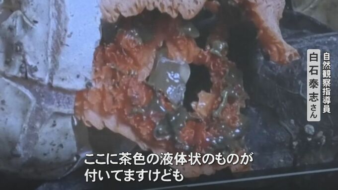 「ここに茶色の液体状のものが付いてますけども、そこに虫がやってきて、菌を媒介しているんじゃないかなと思ってます」