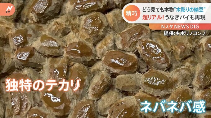 「テカリ」や「ネバネバ」具合まで忠実に再現。木彫りで作った納豆がSNS上で大きな話題となっています。9月17日、ツイッターに投稿されすでに13万いいねを獲得したのが…ただの納豆に見えますが…作者 キボリノコ…