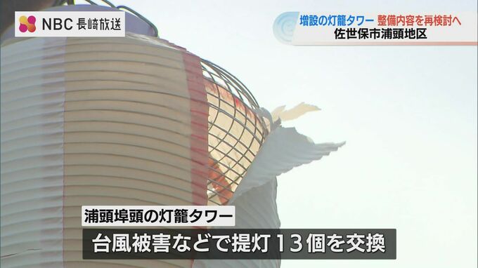 長崎県佐世保市のクルーズ船受け入れ施設に増設が計画されている灯籠タワー2基の仕様について、佐世保市はすでにあるタワーでの提灯破損の被害が大きいことから整備内容を再検討することにしています。
