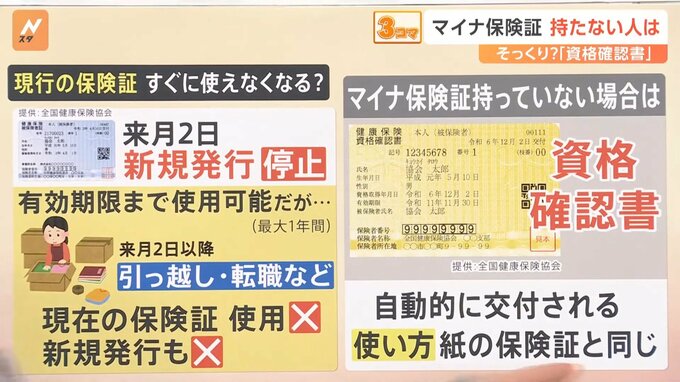 ただ、12月2日以降に引っ越しや転職などをすると今の保険証は使えなくなり、新規発行もできなくなるので、引っ越しや転職などを予定している人は注意が必要です。