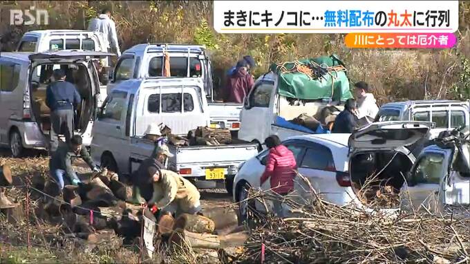 用意されたおよそ40トンの丸太は、25日の夕方時点でもう“残りわずか”に。